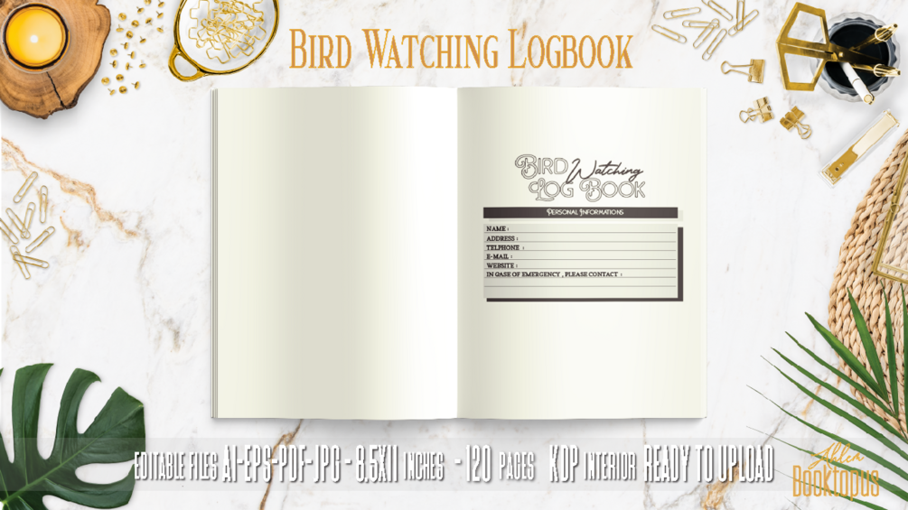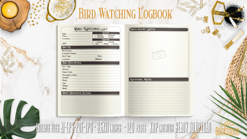 You'll get “Bird Watching Logbook” with PDF ready to upload on KDP with PowerPoint, Editable files for customization.