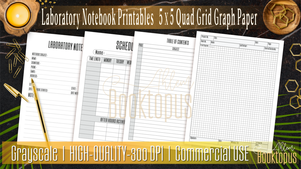 LABORATORY NOTEBOOK - 5X5 QUAD GRID GRAPH PAPER- KDP PREMIUM INTERIOR